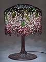 18" Wisteria burgundy leaded glass and bronze Tiffany lamp #342