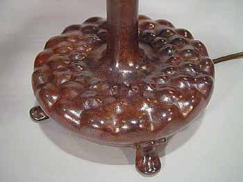 The suface of the lamp base and sockets are patinated with brown /dark green- brown Tiffany patina made in our Studio using the original recipe handed down by Tiffany Studios New York. No lacquer is used in the patination process.